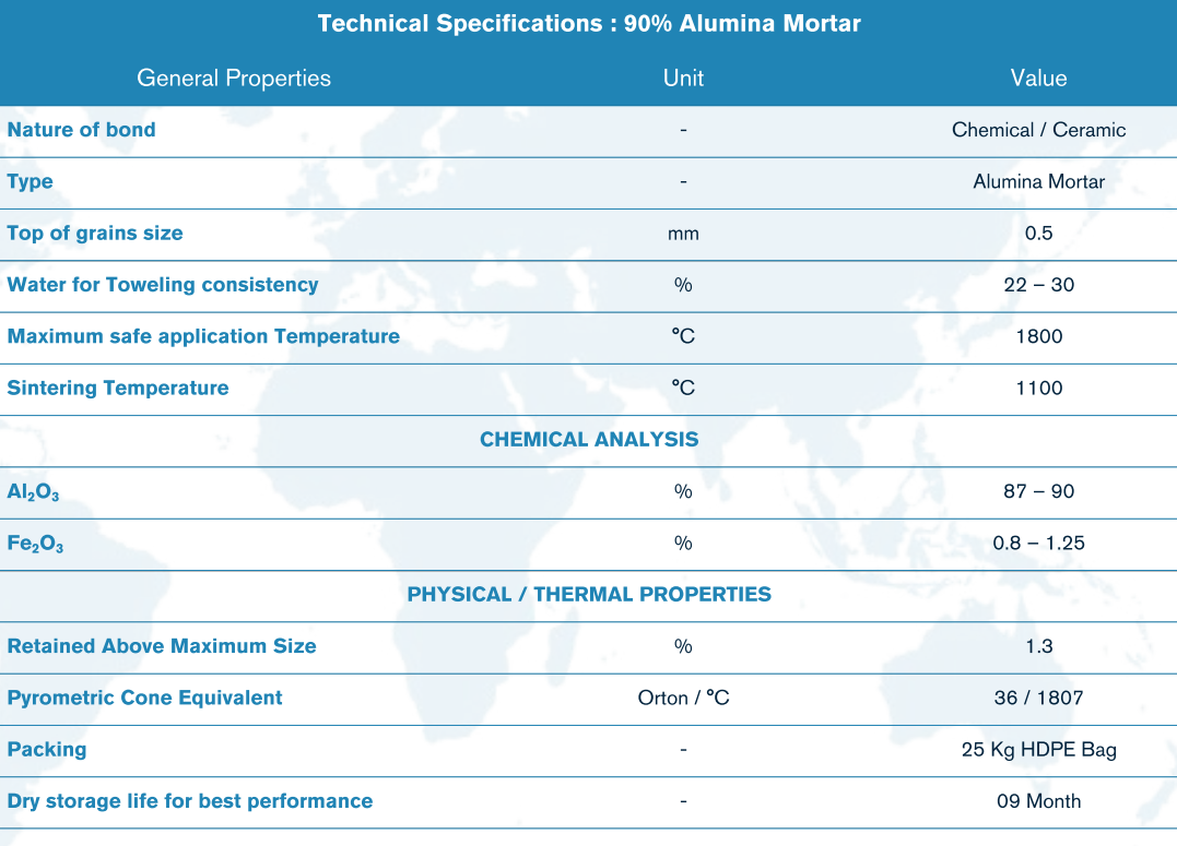 Product Data Sheet for 90% Alumina Mortar