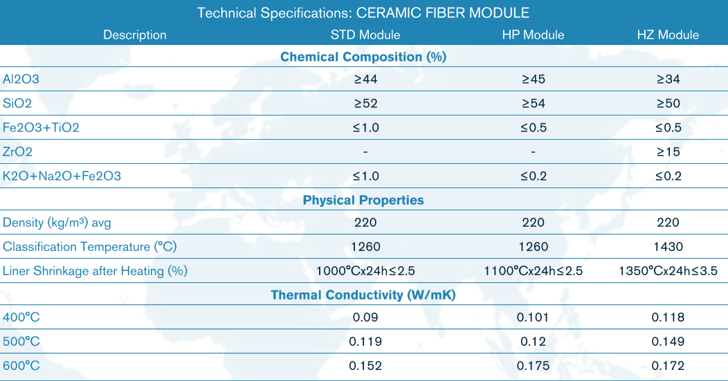 Modules are made from ceramic fibre, pre-compressed to a specific density, and held in position with the suitable anchors/accessories.